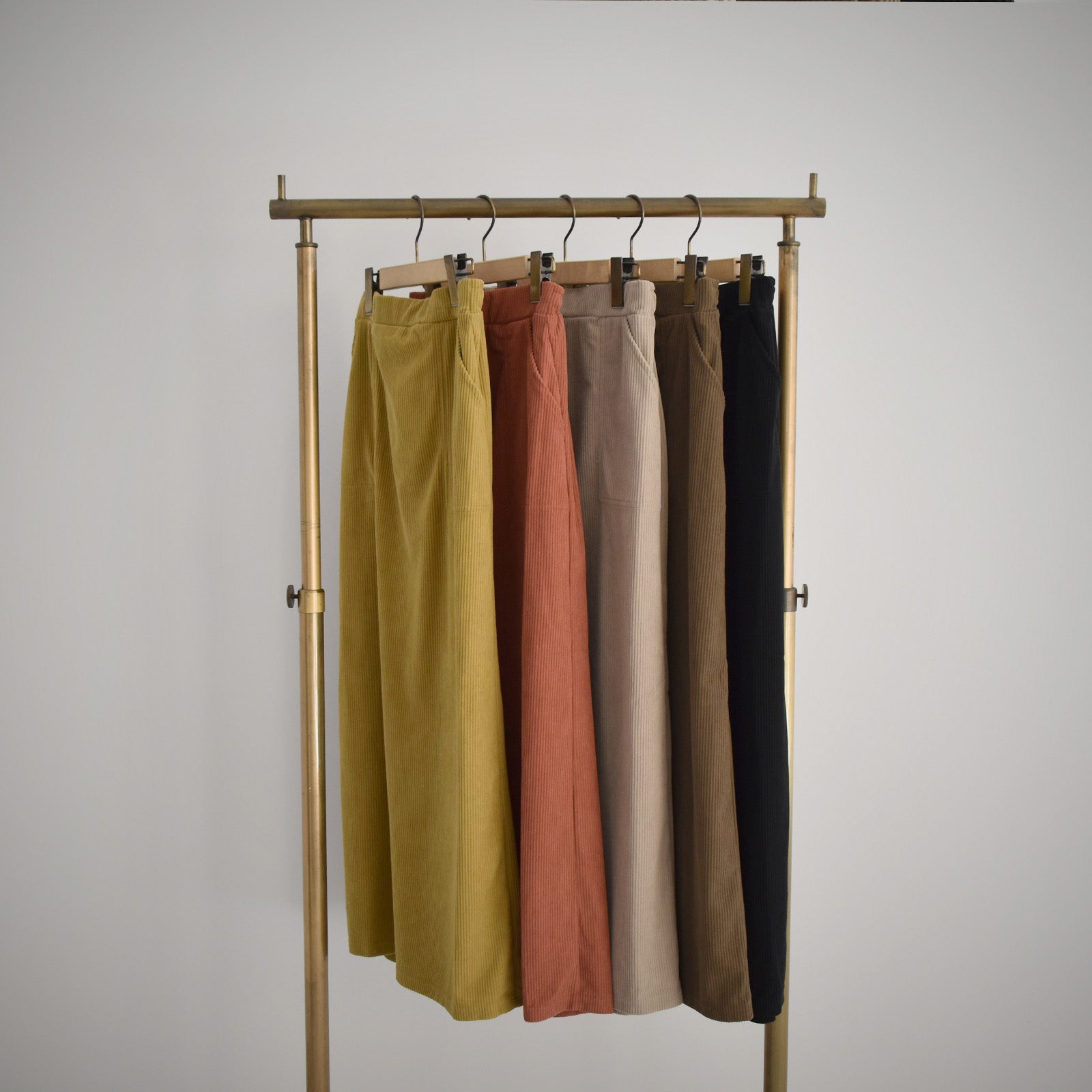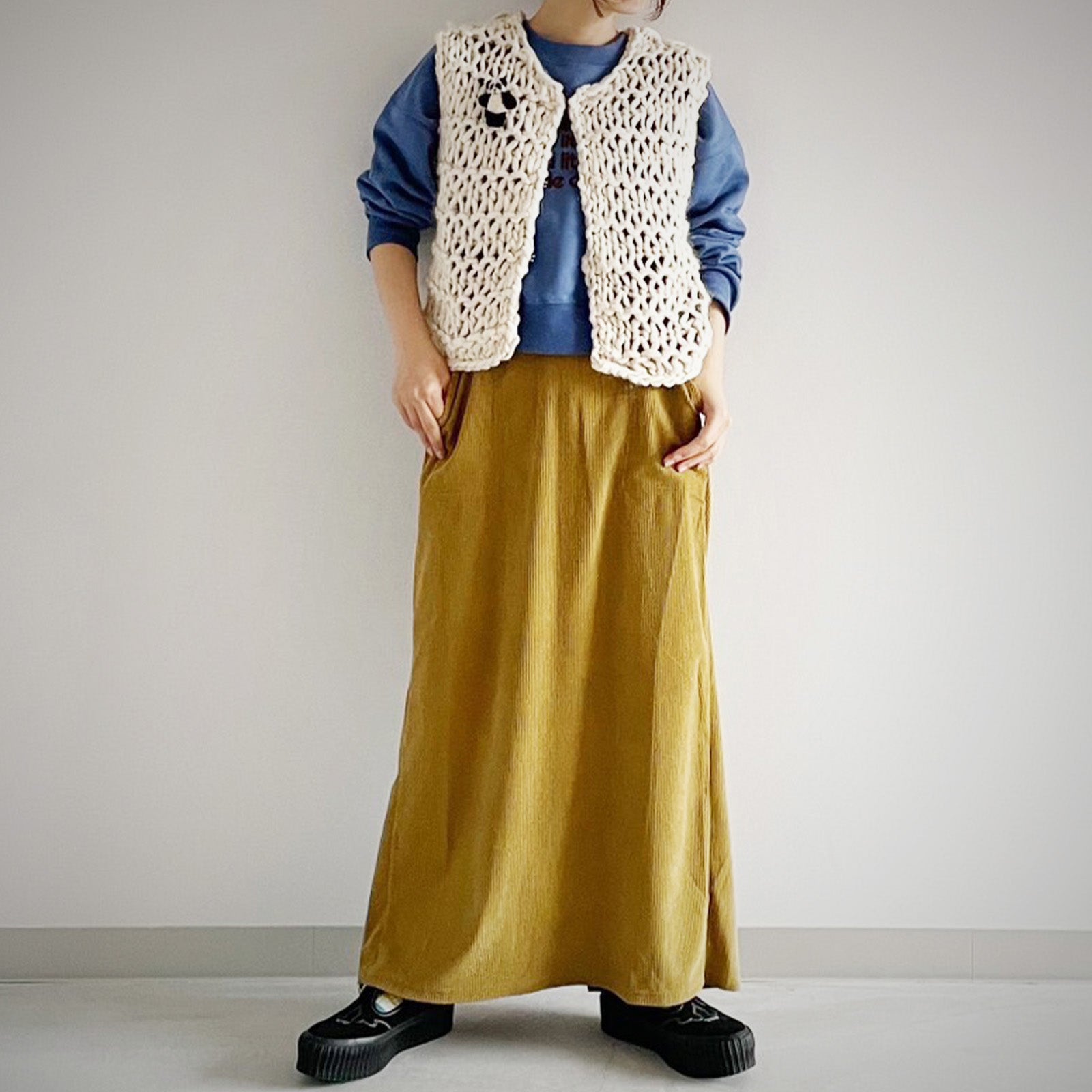 細畝で柔らかさと温かみのあるコーデュロイスカートです。