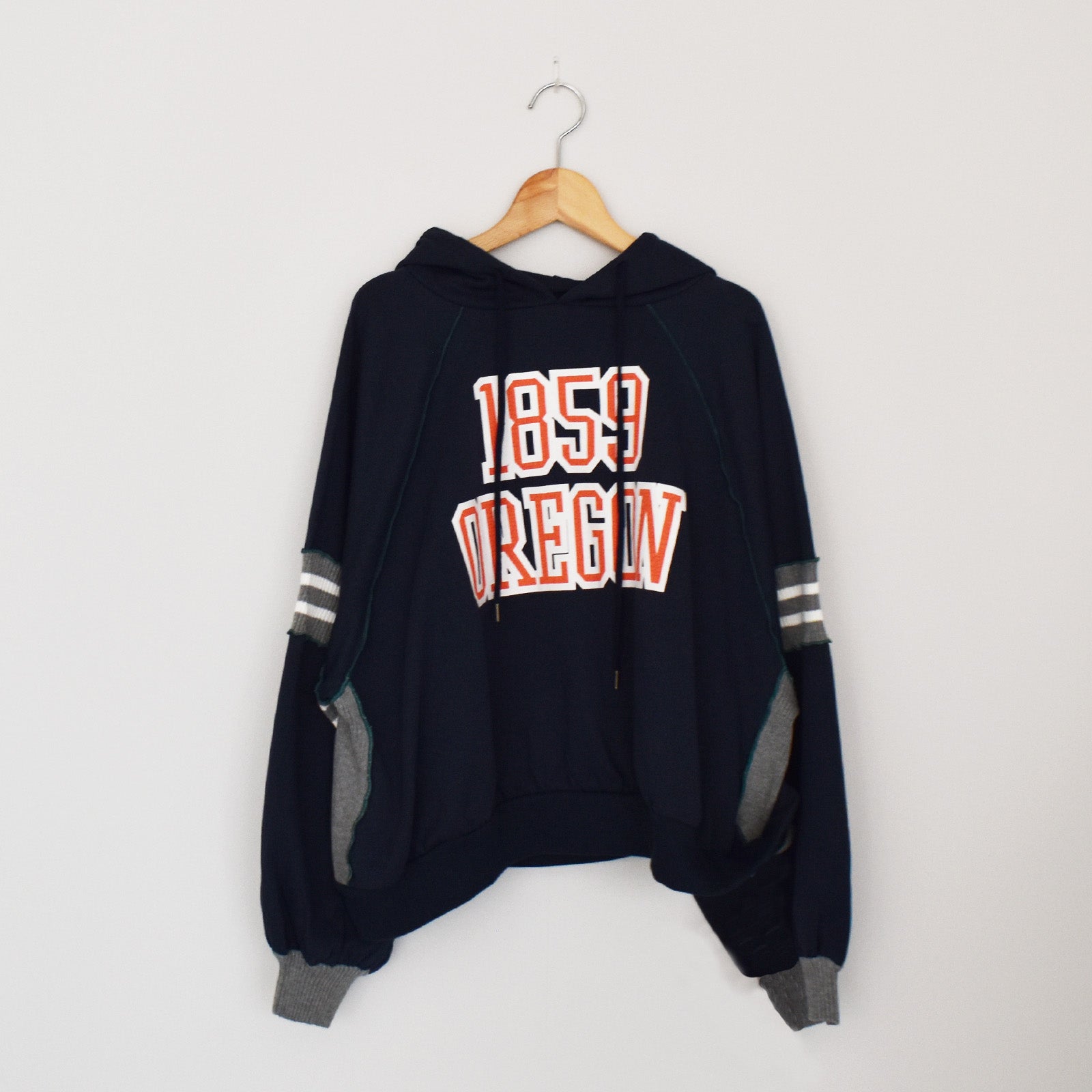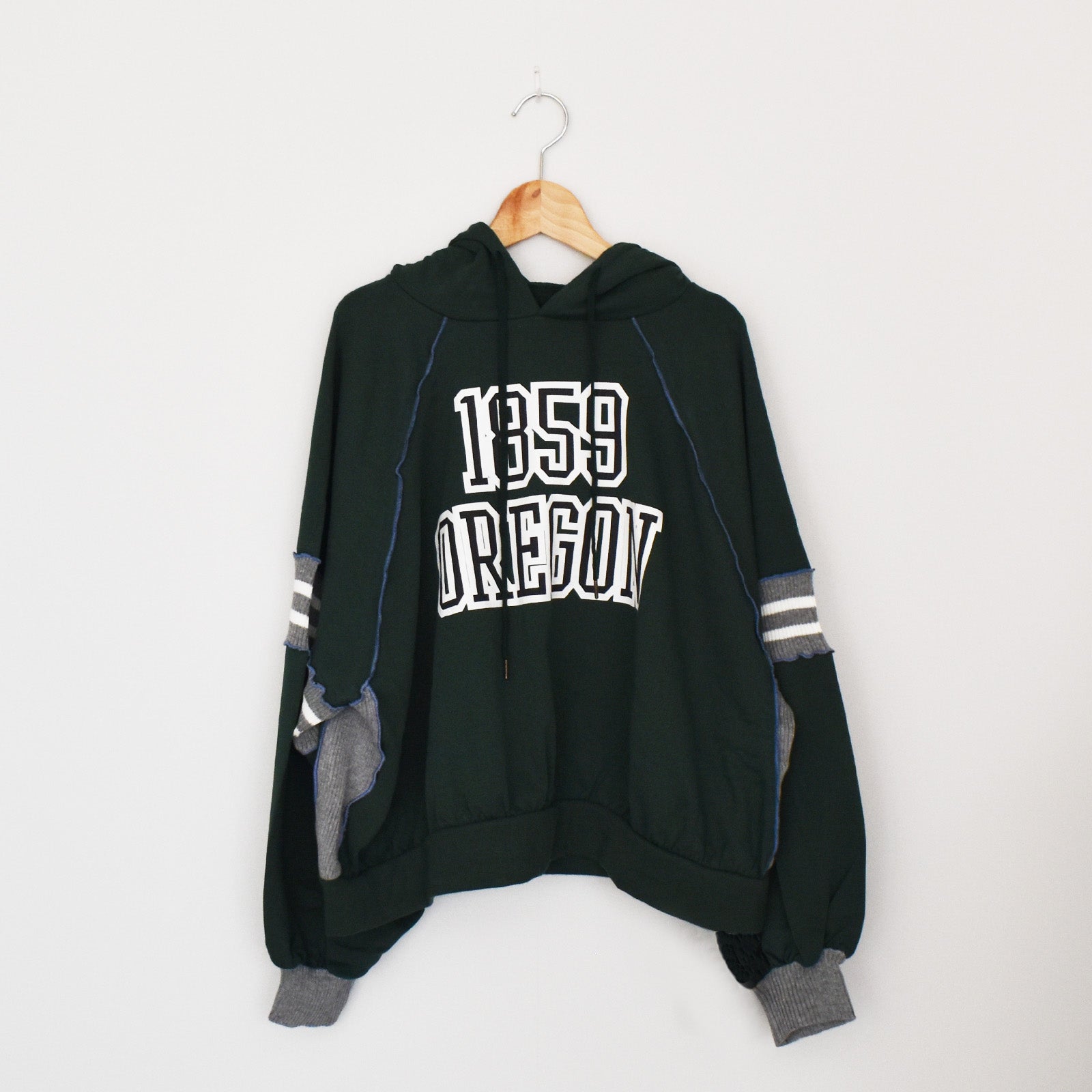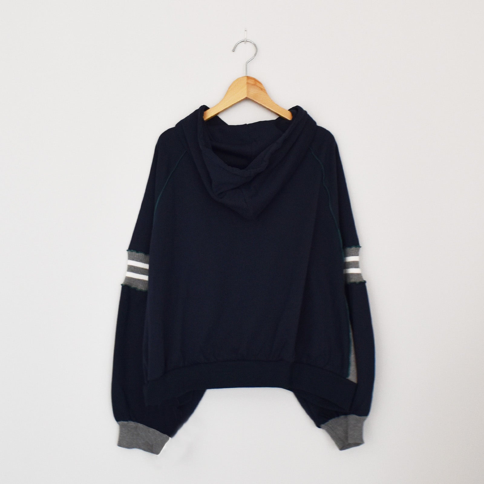 スウェット生地との切替が可愛らしいパーカー。