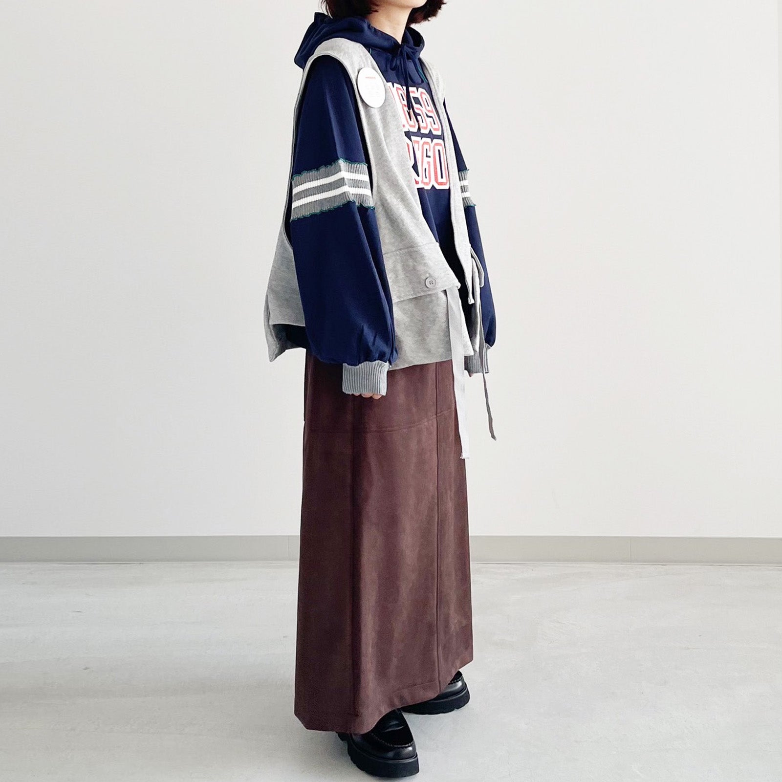 短めの丈感なので、様々なアイテムと合わせやすい一枚です。