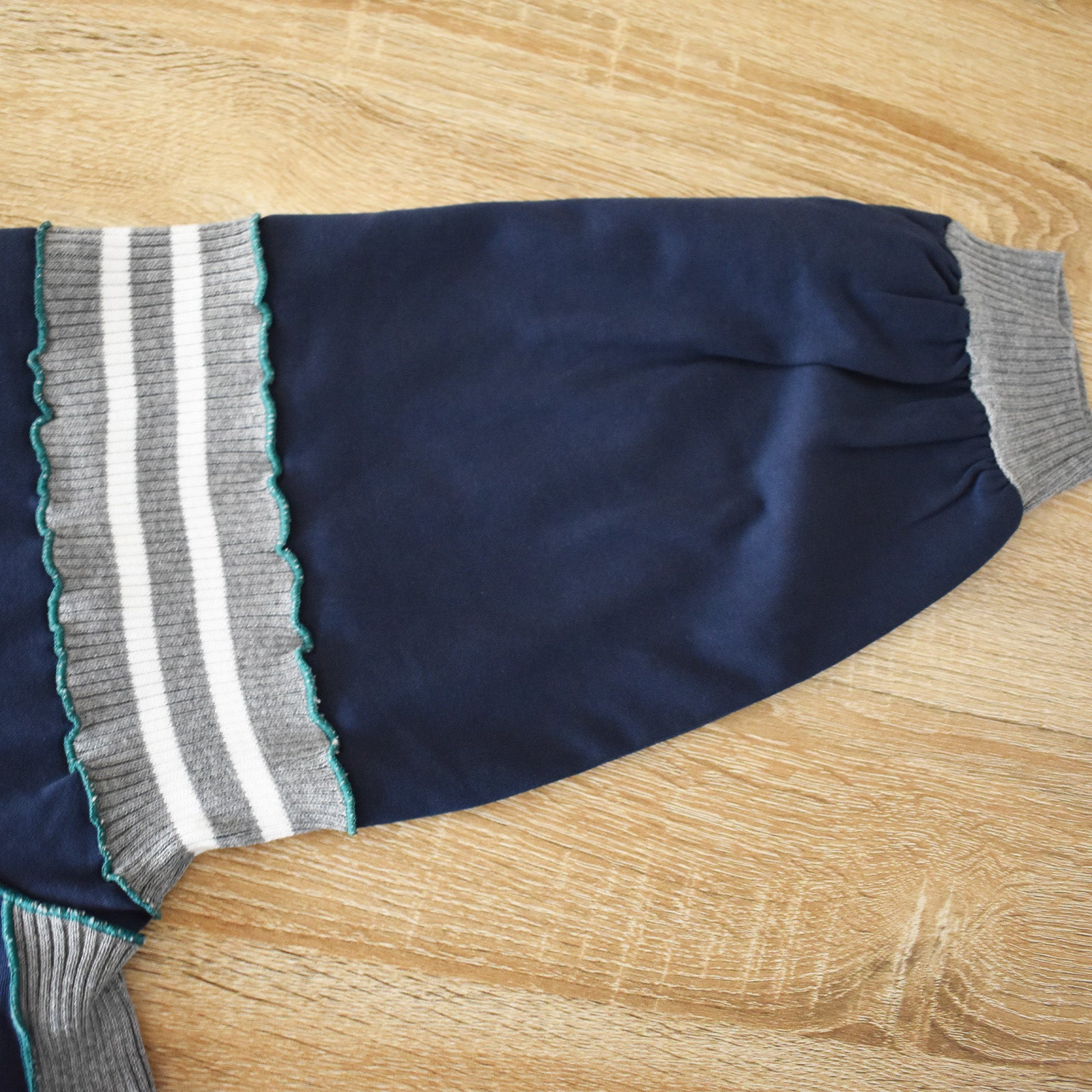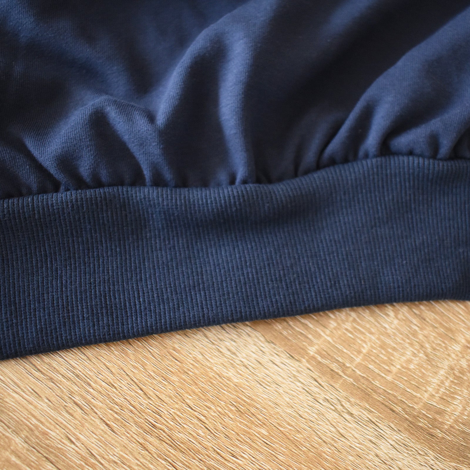 袖口と裾に付いたリブがアクセントになり、