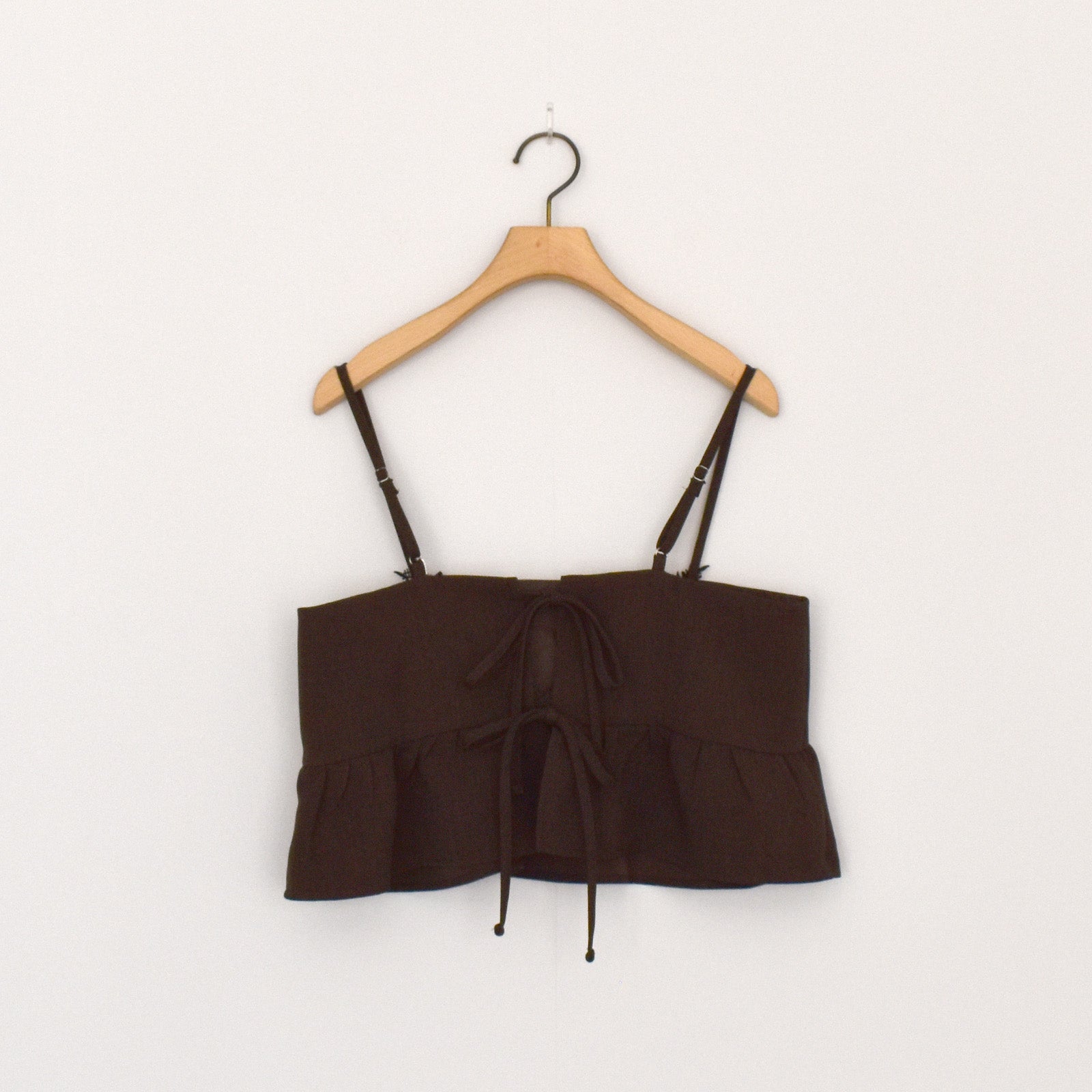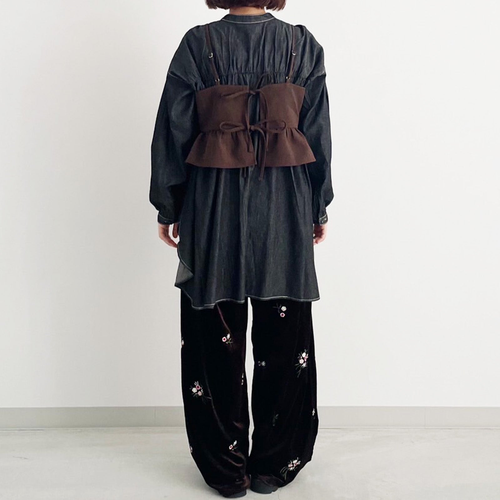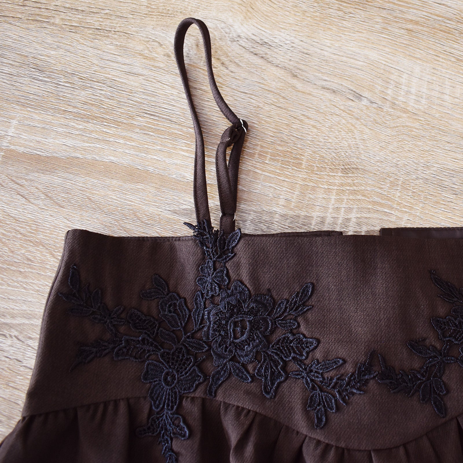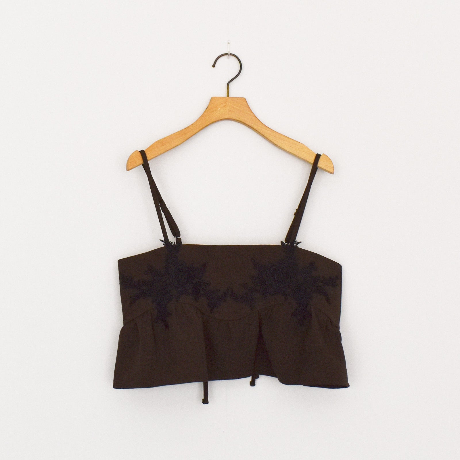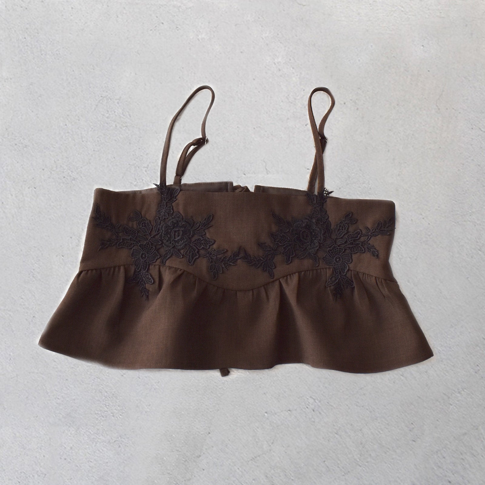 繊細なフラワーレースモチーフがあしらわれたビスチェ。