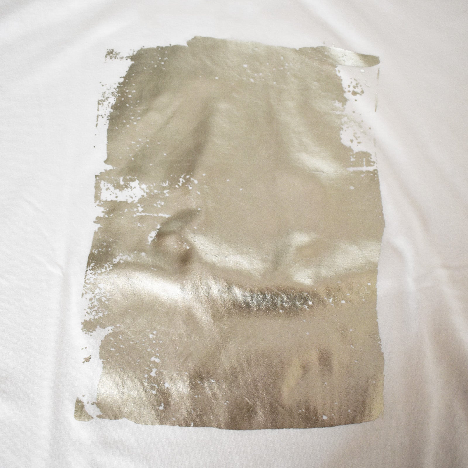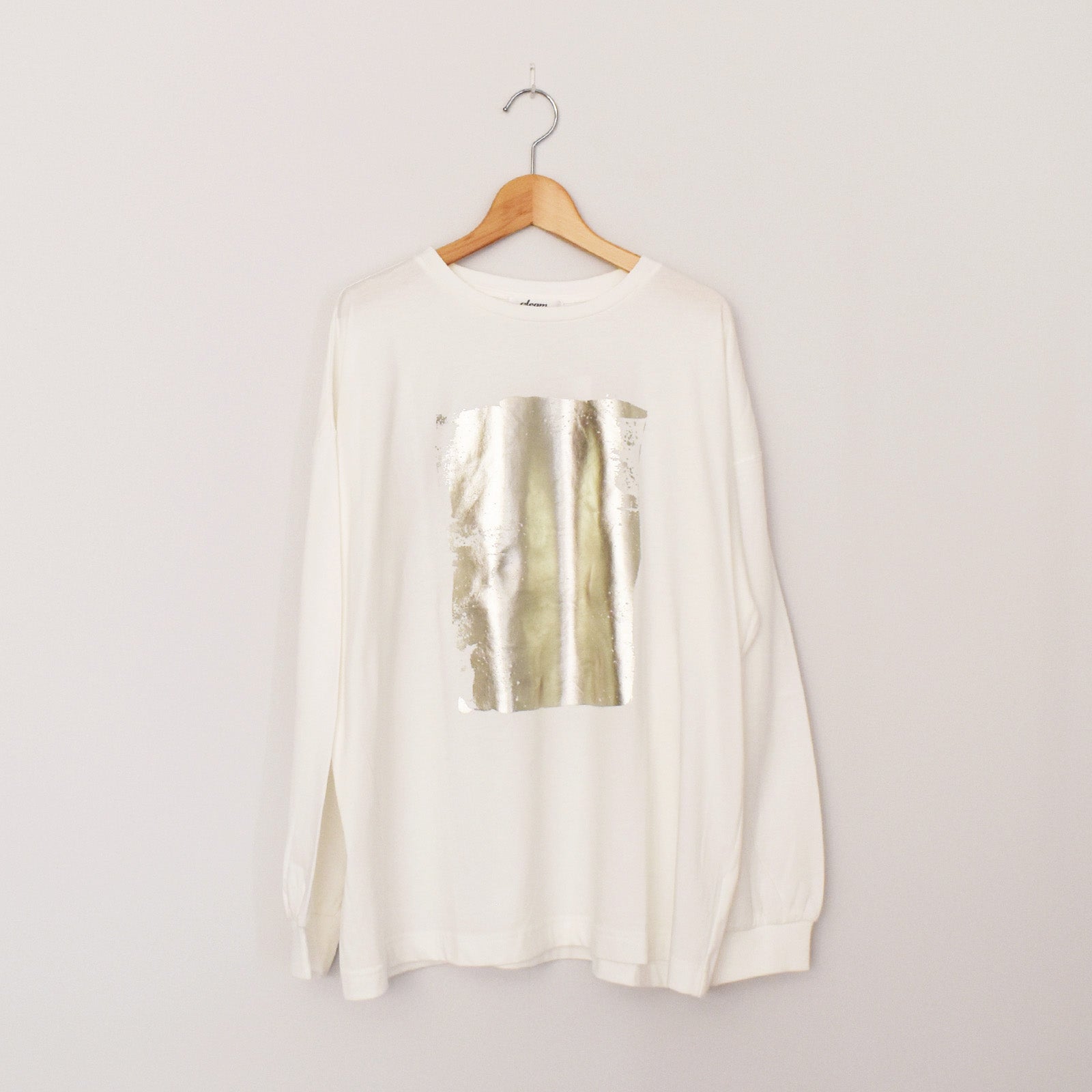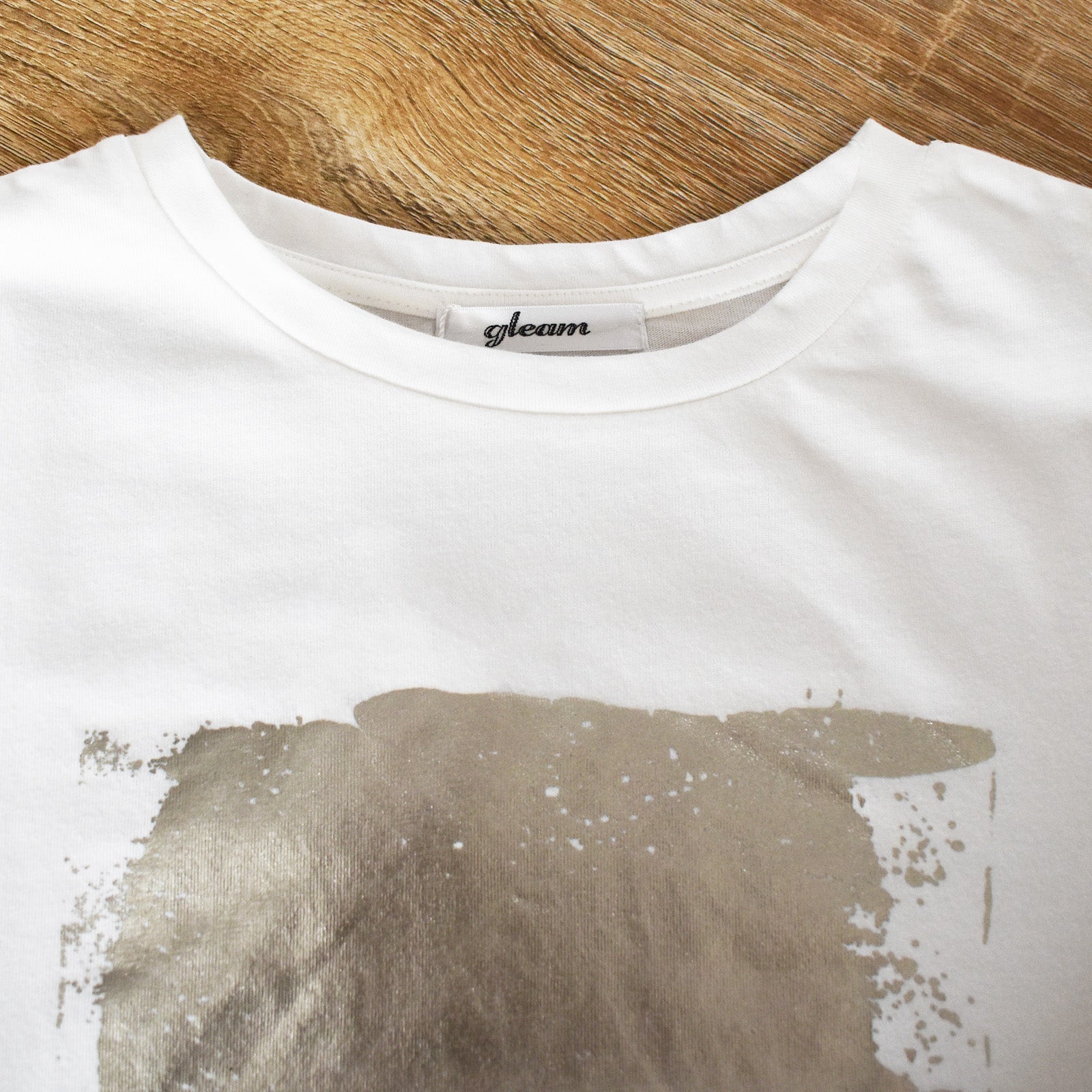 フロントの大きな箔プリントが目を惹くTシャツ。