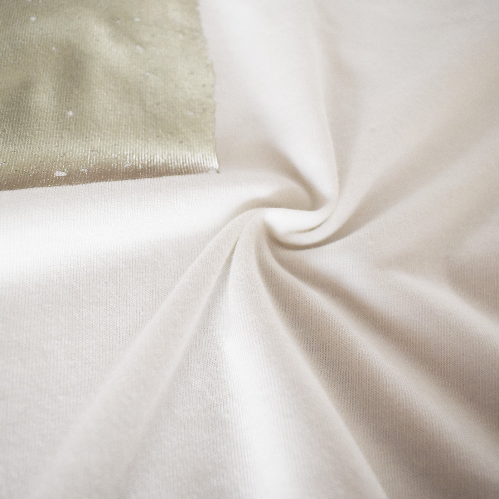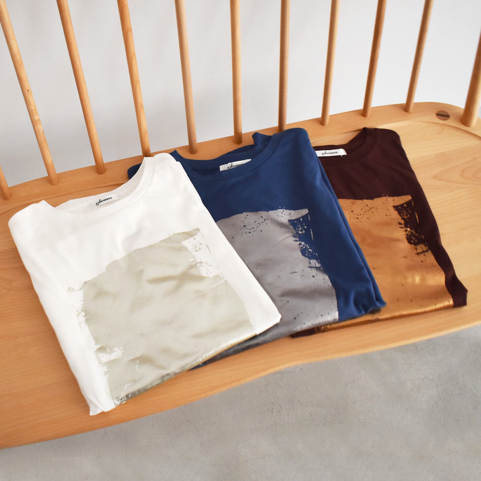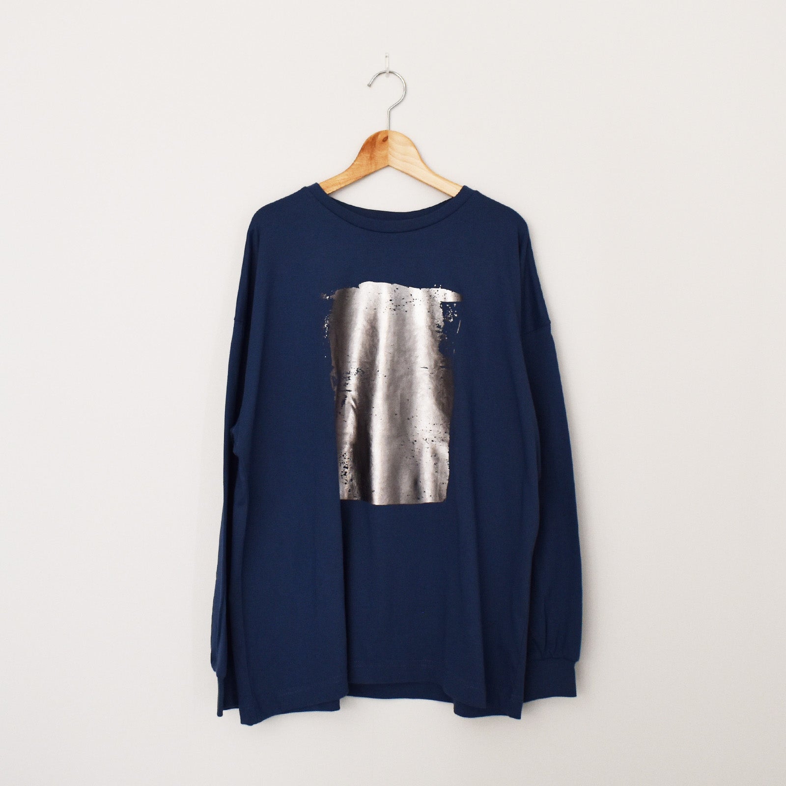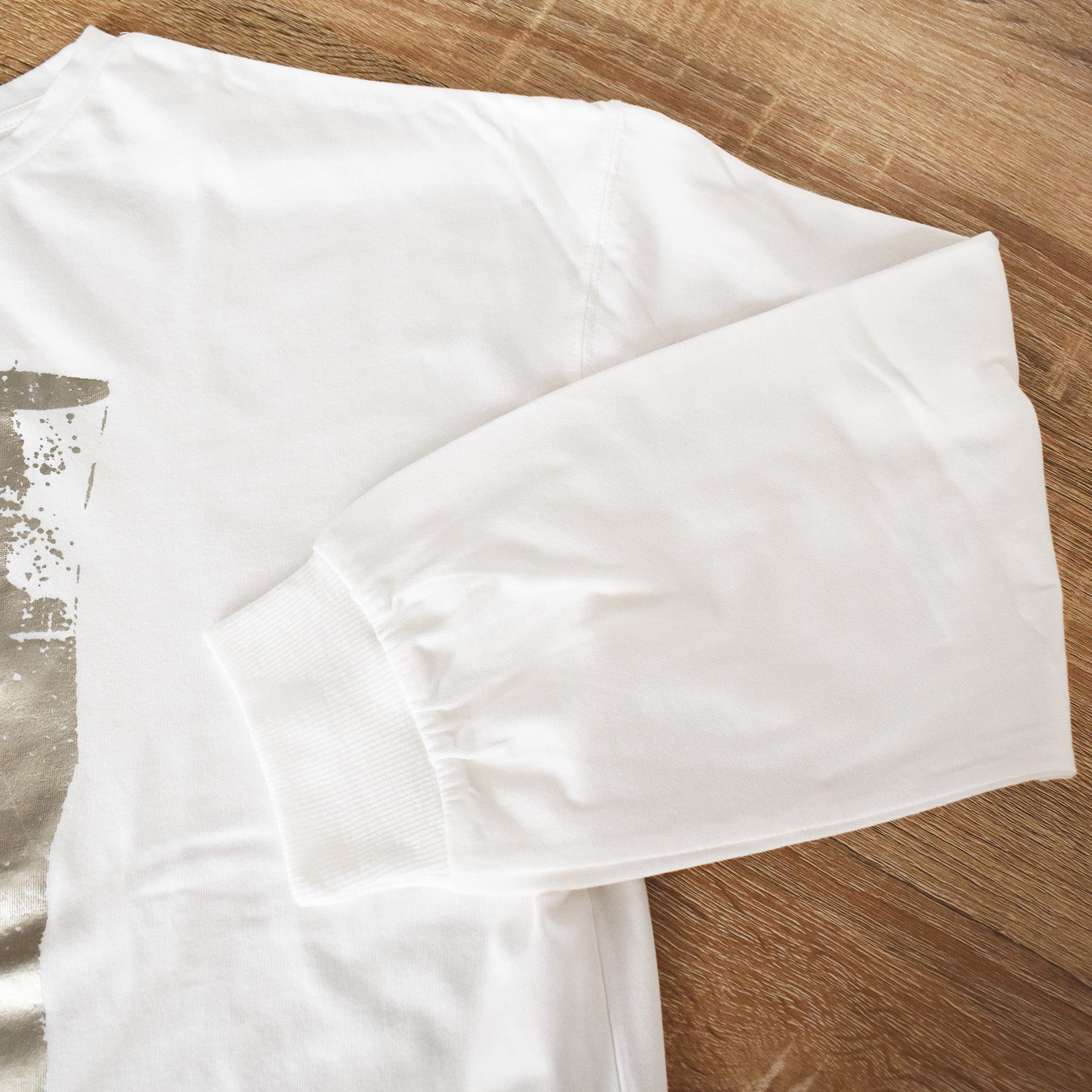フロントの大きな箔プリントが目を惹くTシャツ。