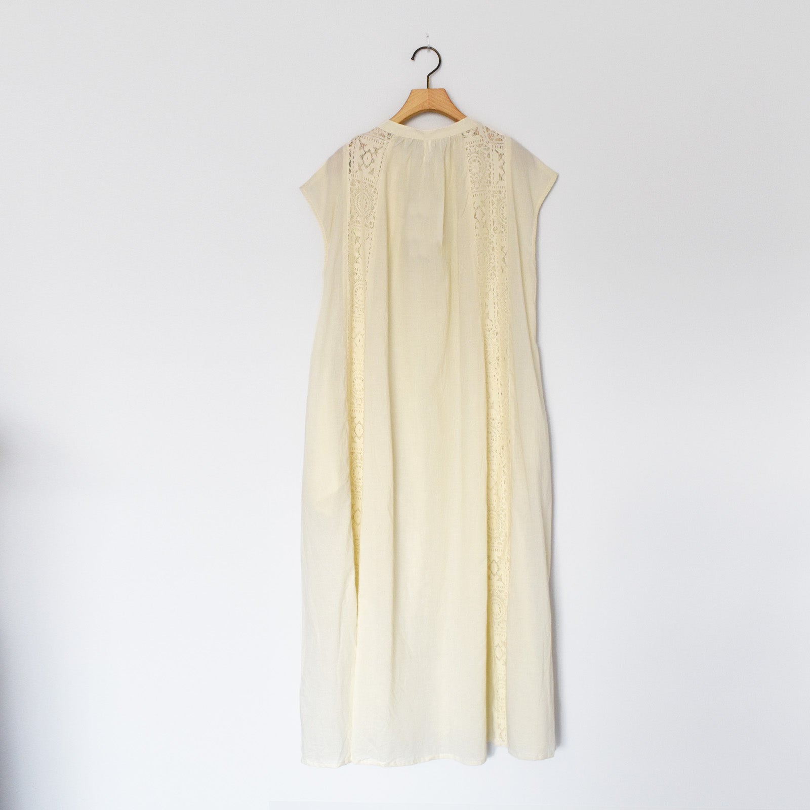 優しい風合いとレースの繊細さが際立つクロシェ編みワンピース。