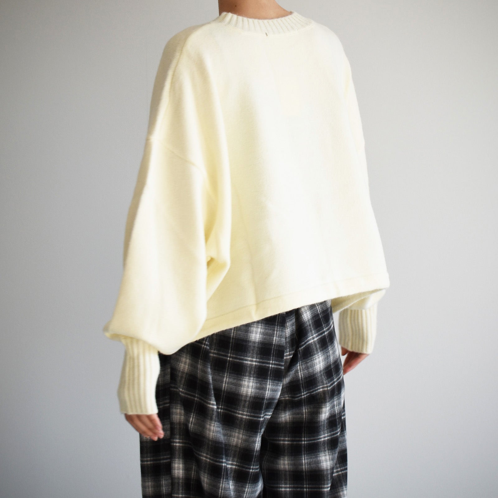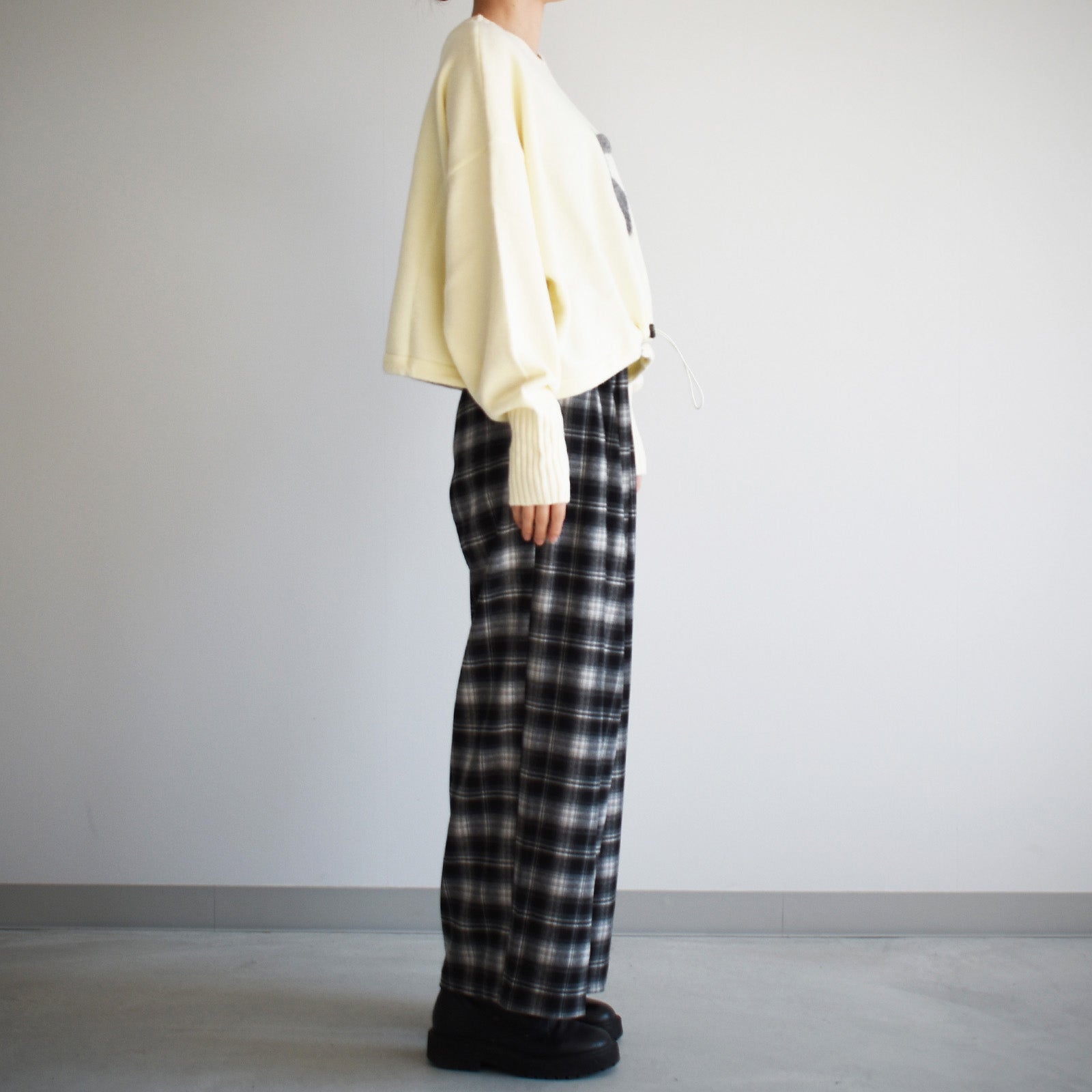 ショート丈なのでワイドなボトムスとも相性抜群です。