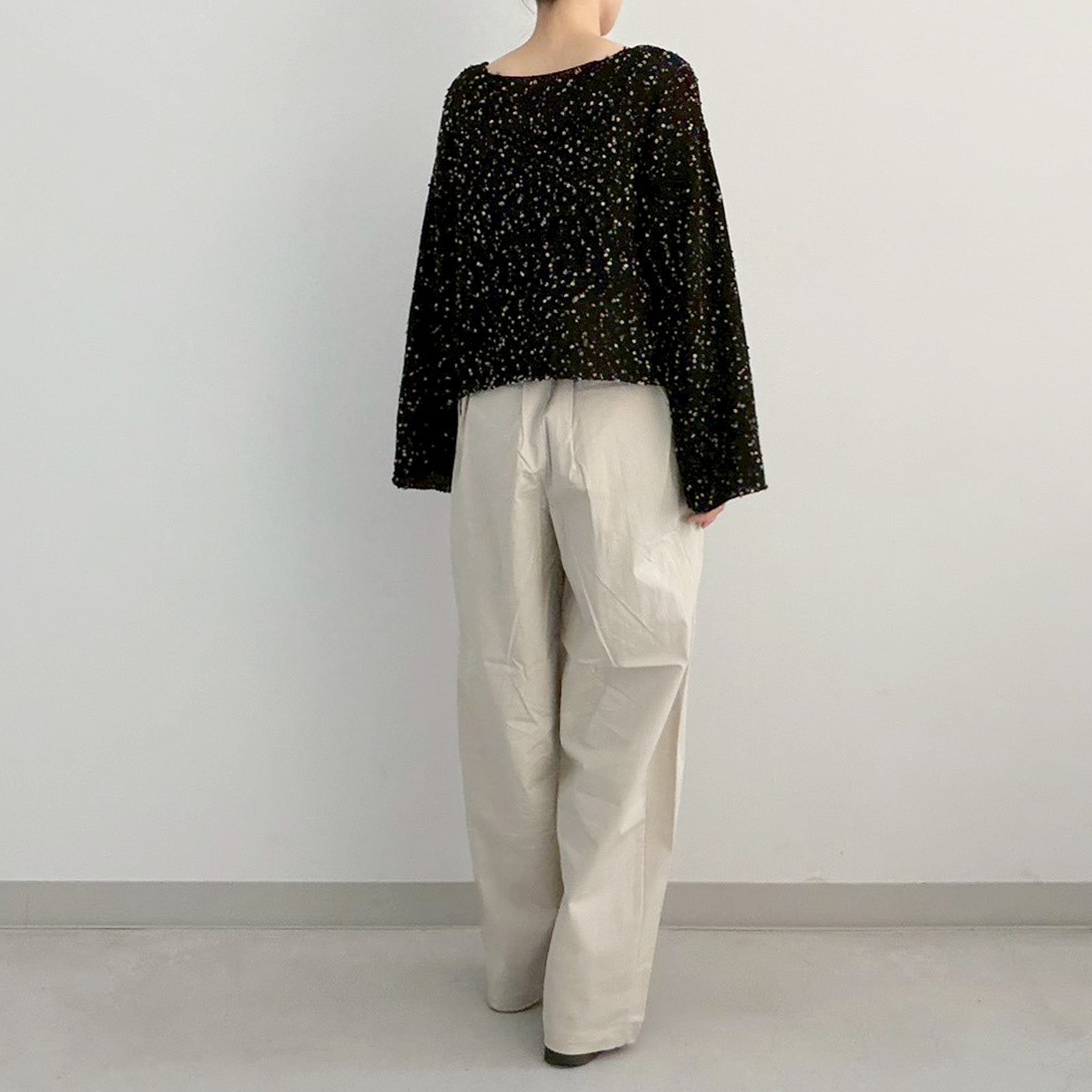 商品ページにて表示しているサイズは、弊社スタッフすべて平置きで採寸したサイズになります。