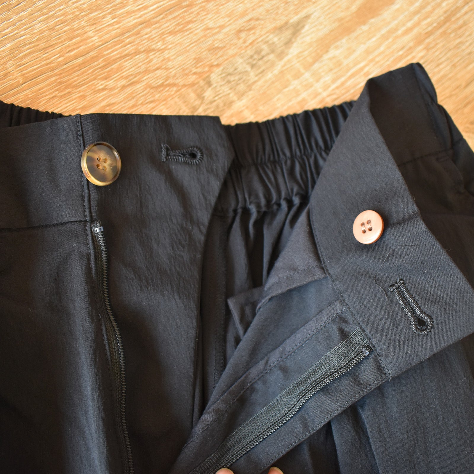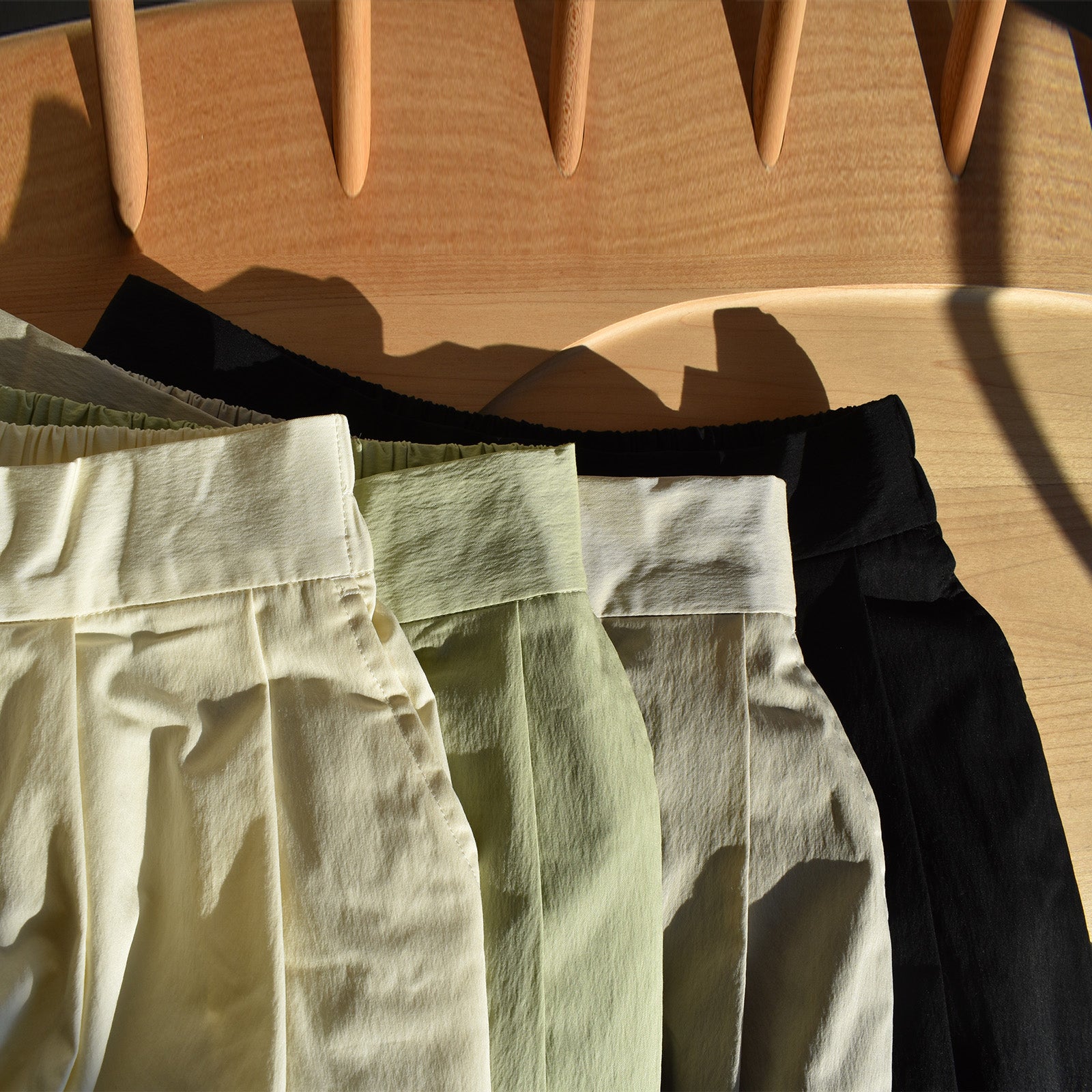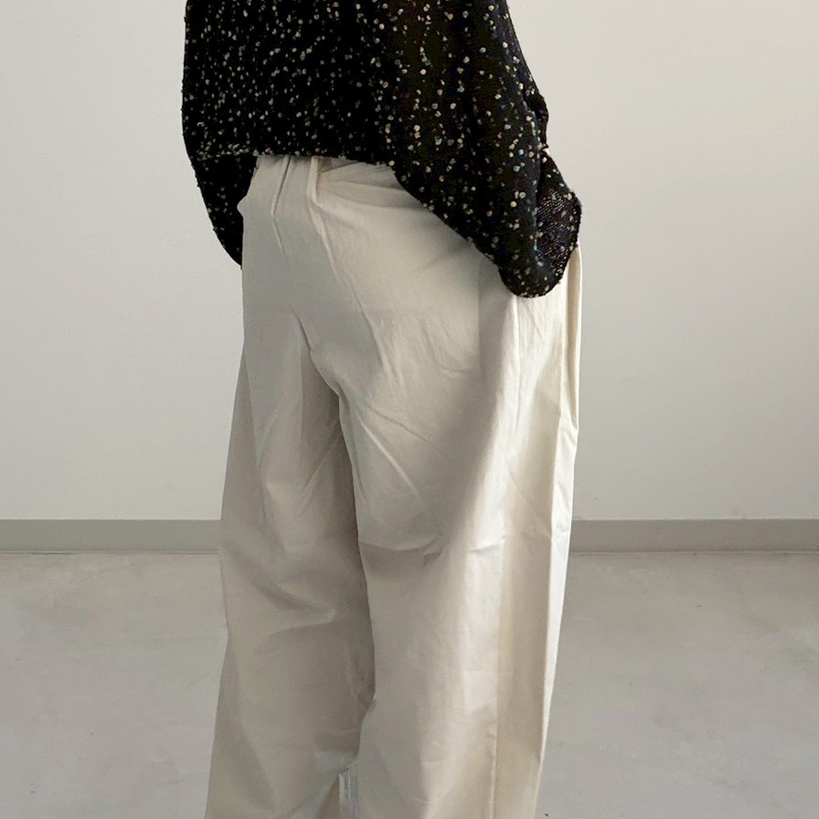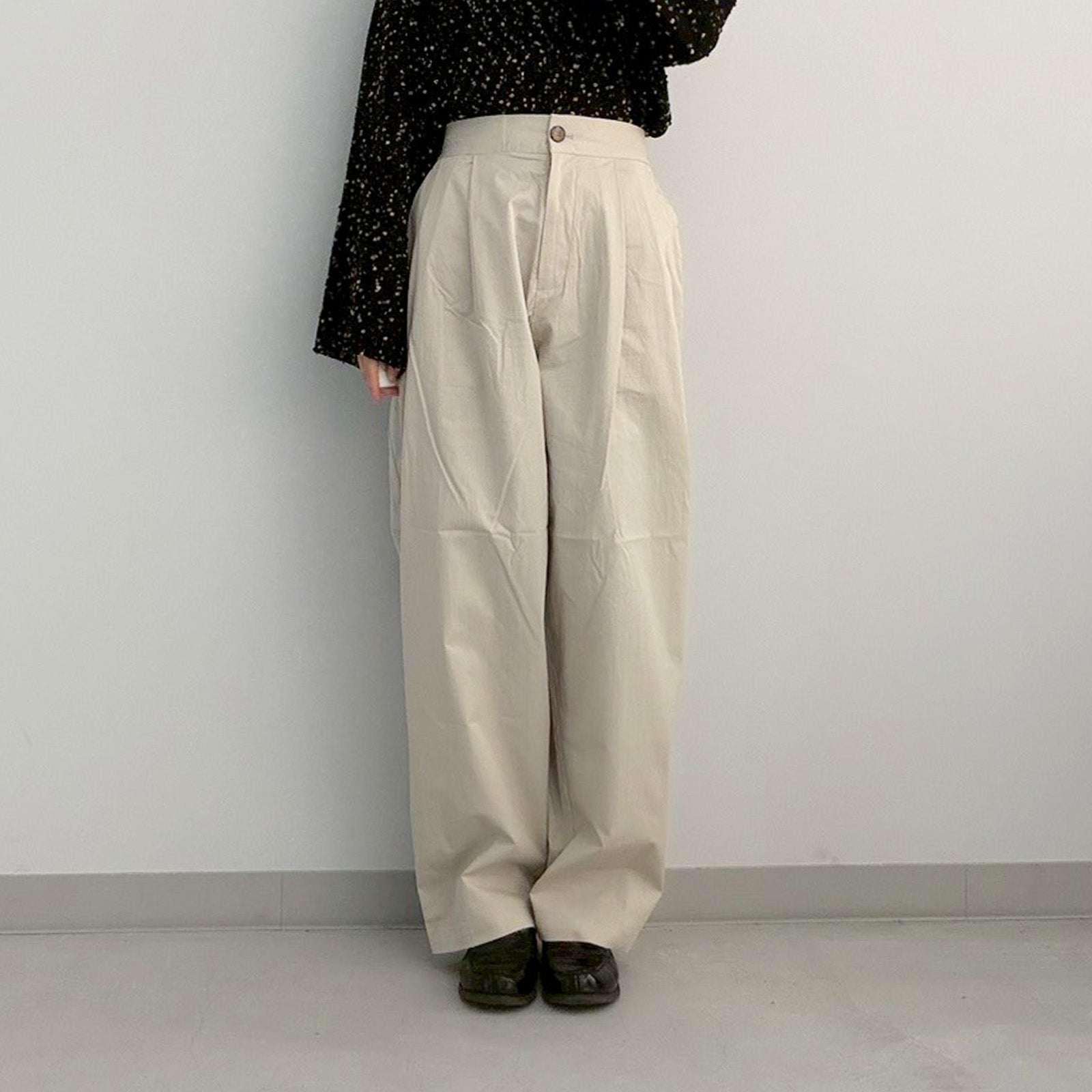 絶妙な形の2タックパンツ。