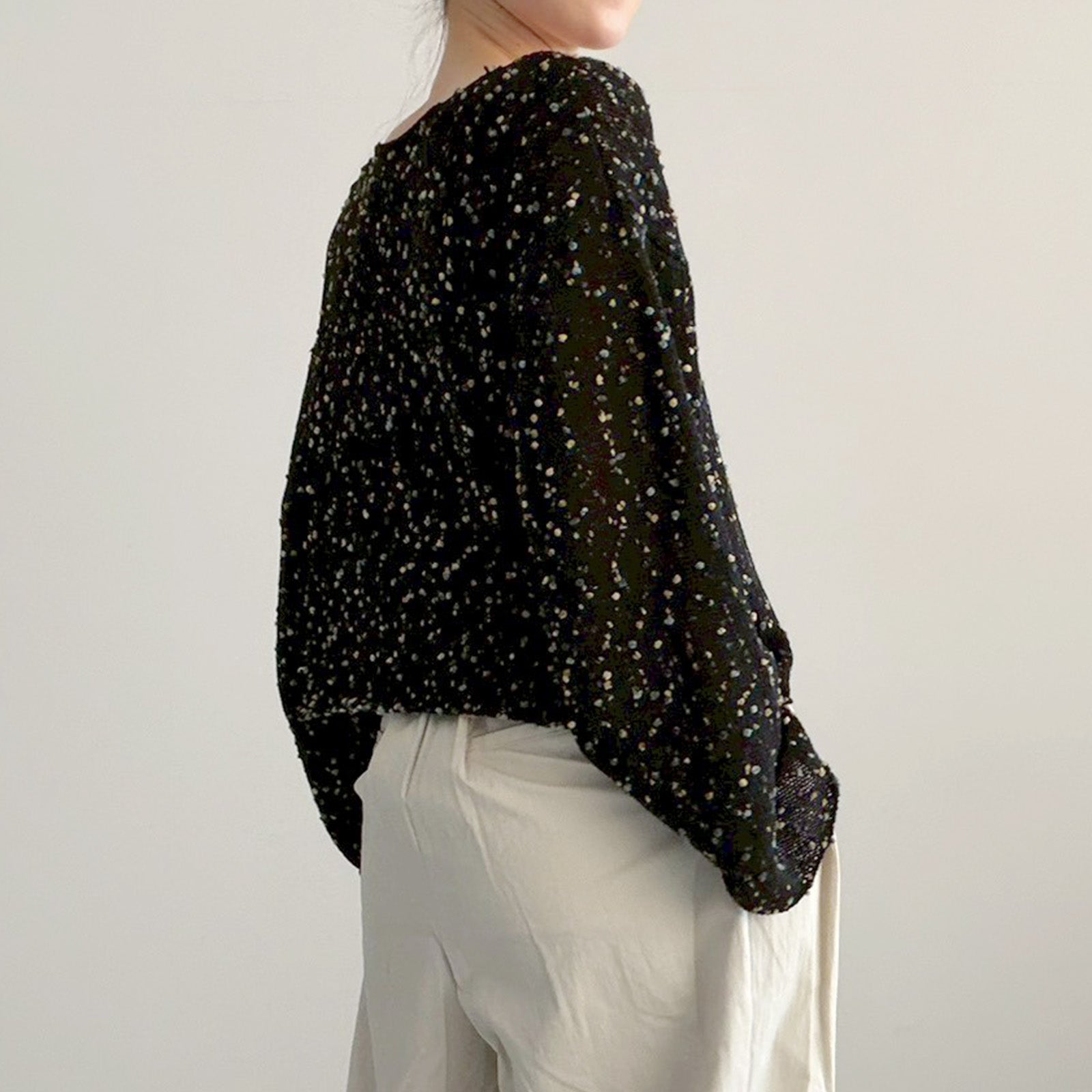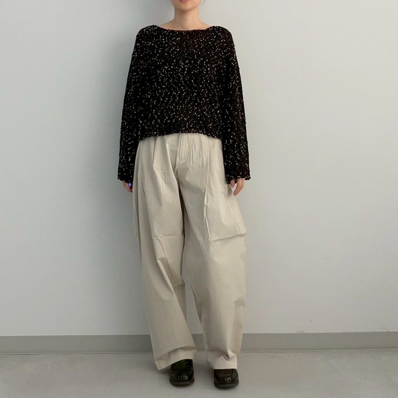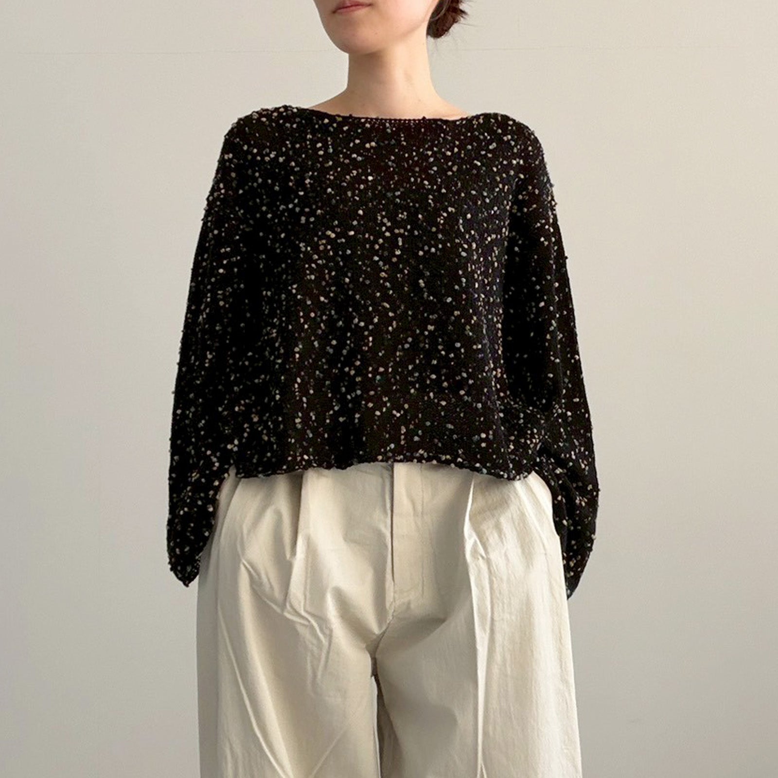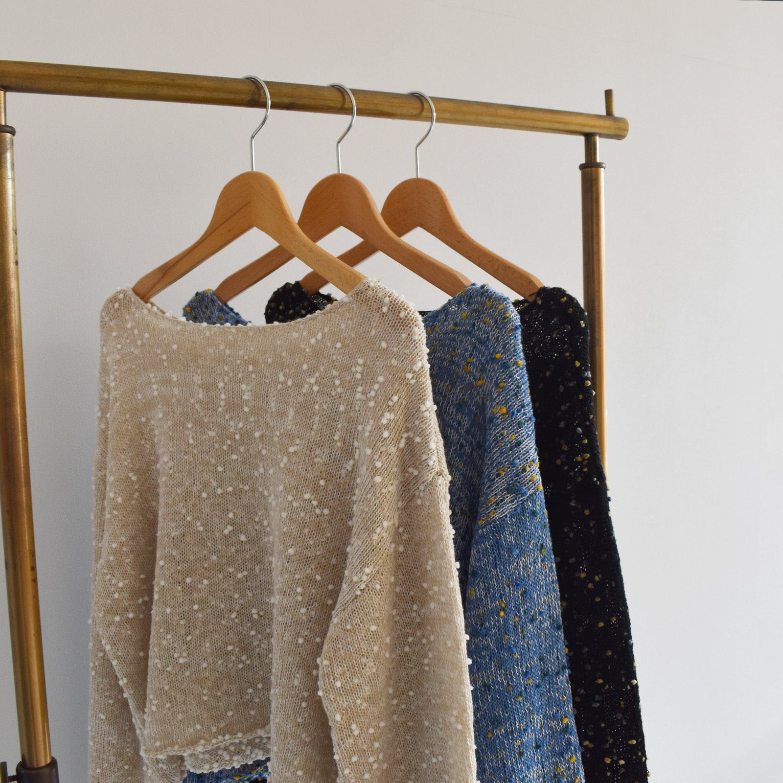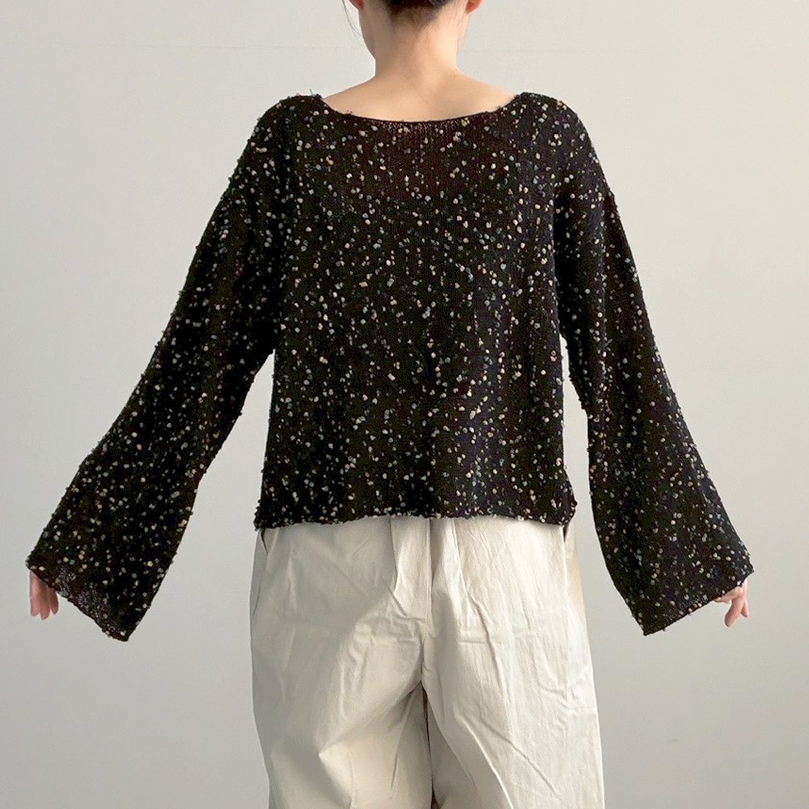 ポコポコとしたネップ風の糸を使用した魅力のデザイン。